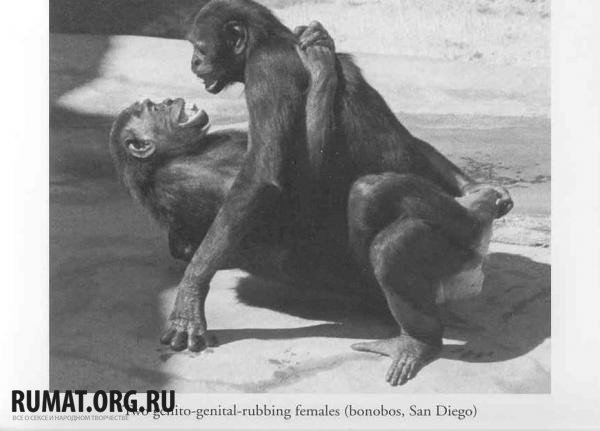 «Дамы» бонобо укрепляют свои дружественные отношения посредством лесбийского секса. Зачастую они практикуют так называемое «трение гениталиями» (GG Rubbing).